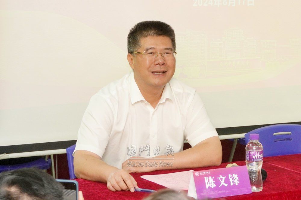陳文鋒代表學校對即將入讀該校的2024級新生表示祝賀和歡迎,並對新生家長給予學校的信任和支持表示感謝。他表示,今年是新中國成立75周年、澳門回歸祖國25周年、廣州中醫藥大學建校100周年,2024級澳門新生在如此特殊的時間節點入學,意義非凡,承載著歷史與未來的期望。